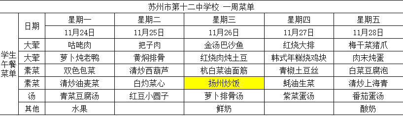 下一条:2025-2026学年第一学期苏州市第十二中学校第十二周菜单