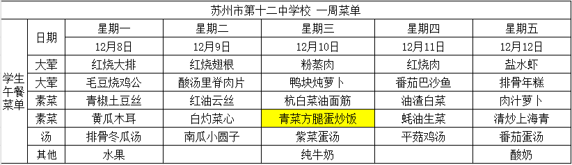 上一条:2025-2026学年第一学期苏州市第十二中学校第十六周菜单