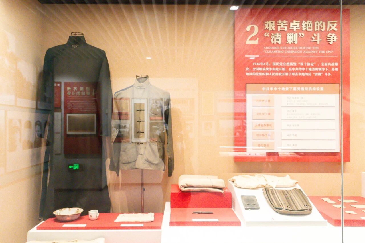 第一展厅“新民主主义革命时期”,通过雕塑、壁画与实物,展现苏州地区从建党到大革命、土地革命、抗日战争及解放战争时期的英雄故事。