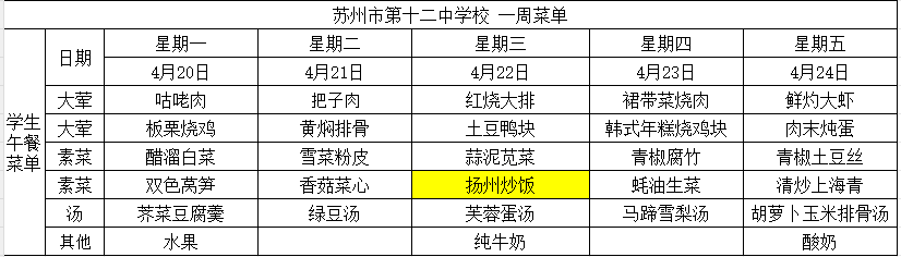下一条:2025-2026学年第二学期苏州市第十二中学校第七周菜单
