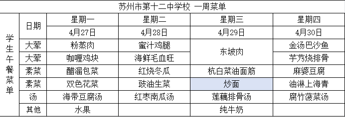2025-2026学年第二学期苏州市第十二中学校第九周菜单